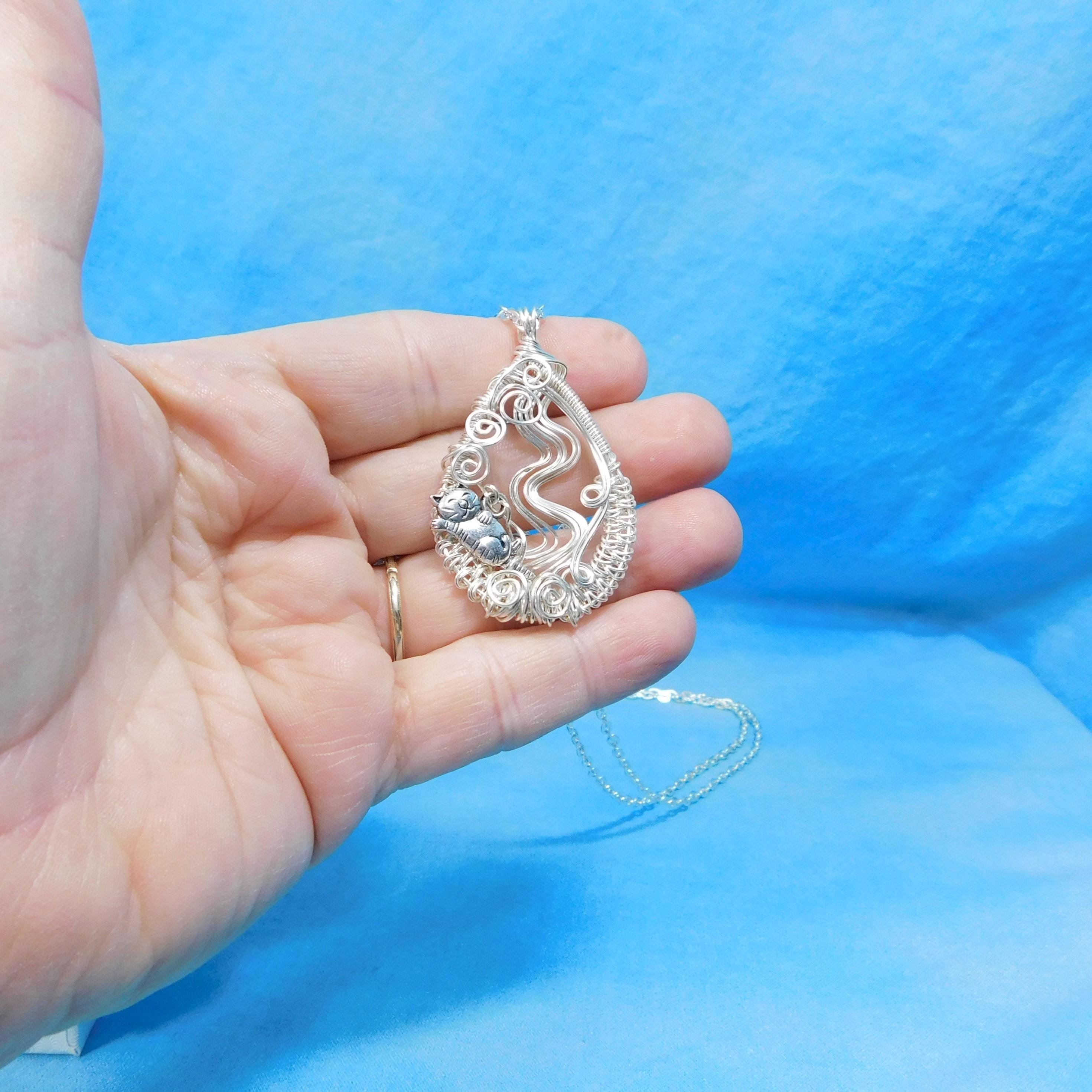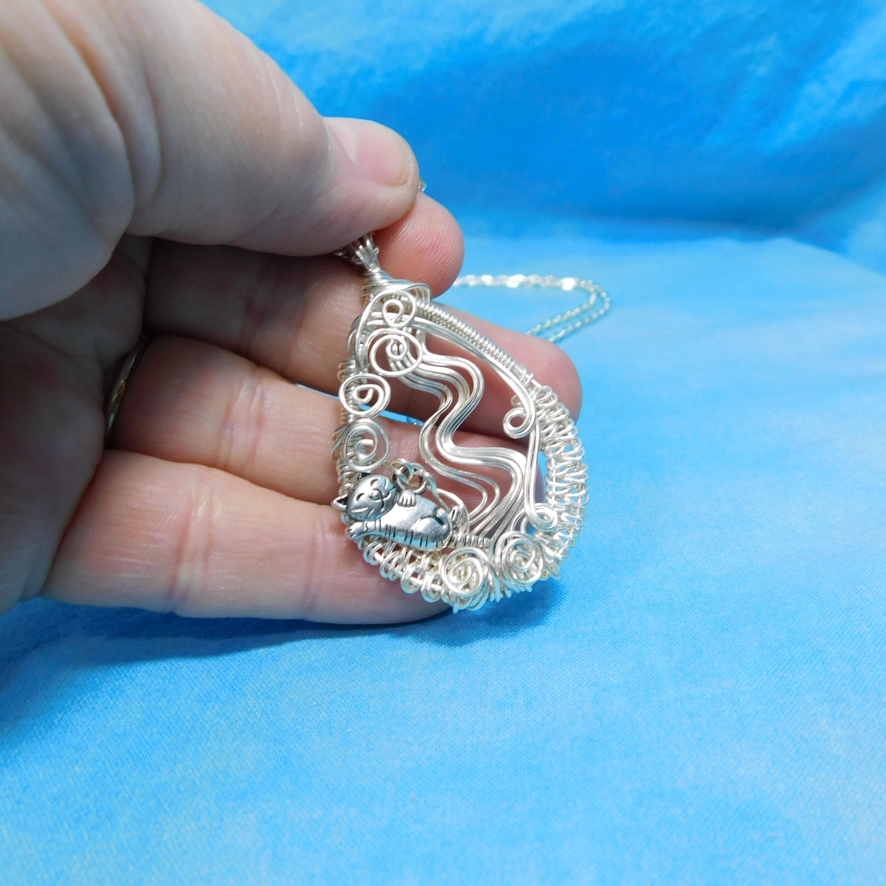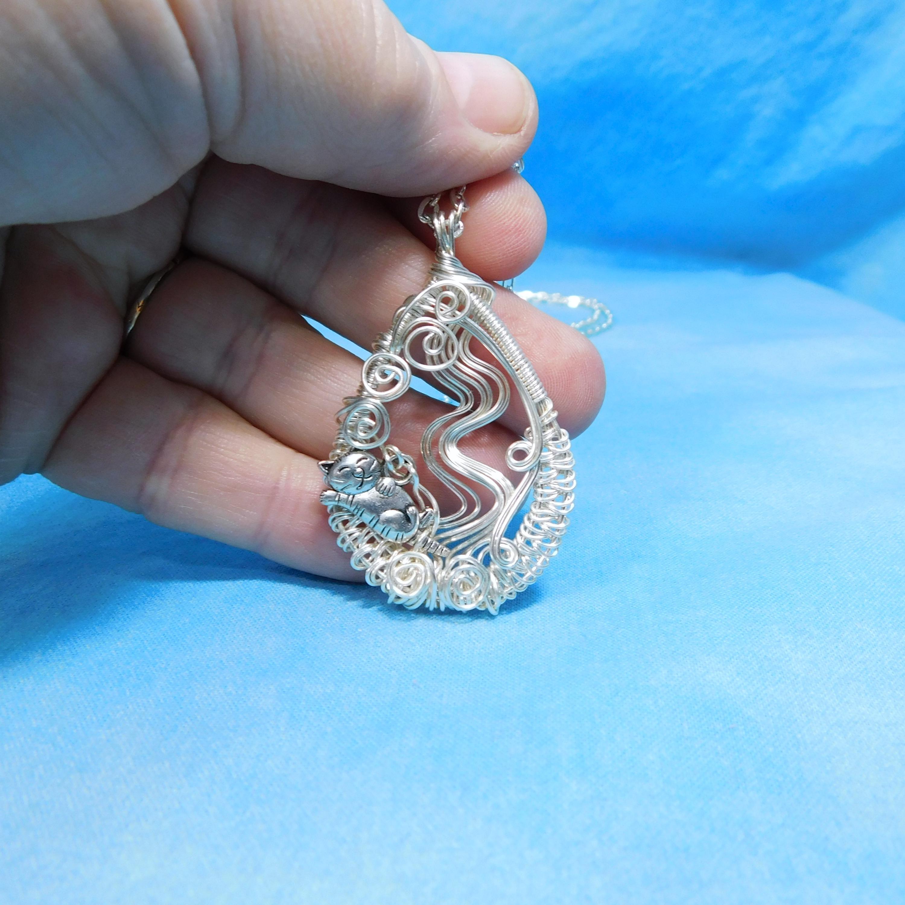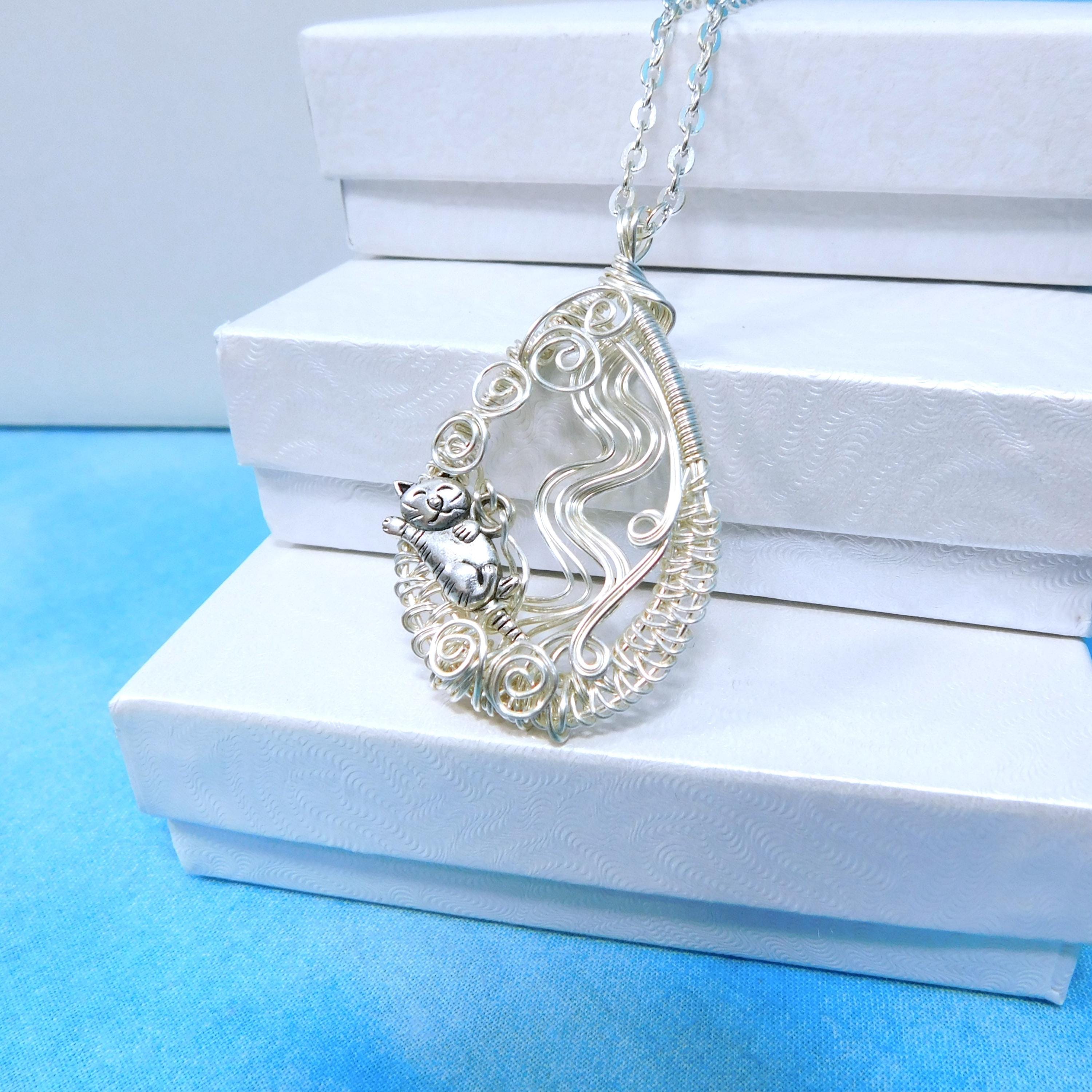 SHIPS FROM THE US! An adorable lazy kitty stretches out along the side of a hand woven wire frame. What a hard life! If someone you know is the servant to a cat, this pendant will thrill her.