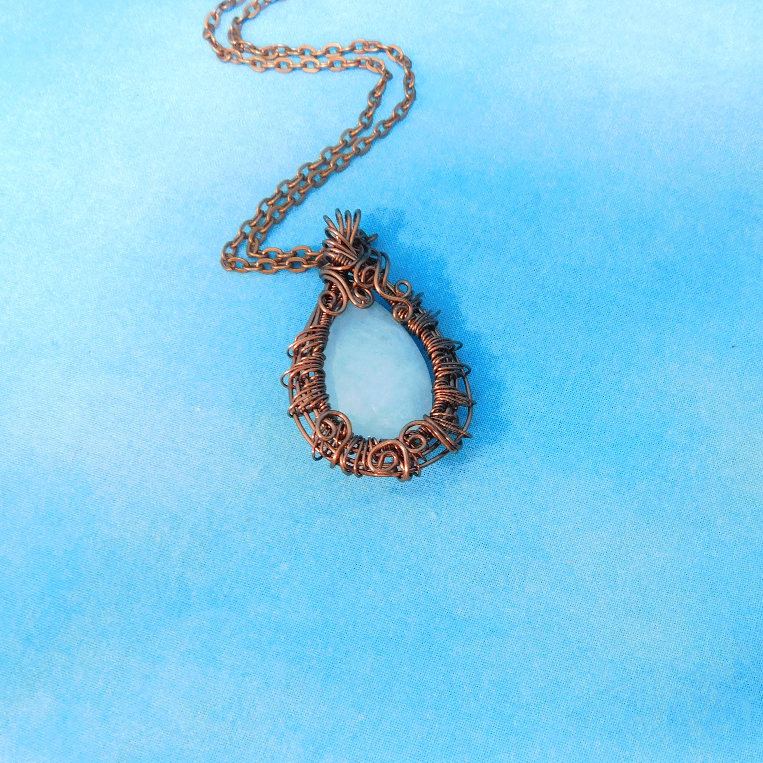 SHIPS FROM THE US! A misty blue Aquamarine gemstone is set within a meticulously hand woven and sculpted copper wire frame. The sweeping strands of wire create a feminine, vintage feel in a one of a kind design.