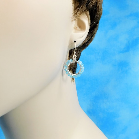 Handmade Hoop Crystal Earrings for Pierced Ears, Artistic Jewelry Birthday Present for Women or Anniversary Gift for Wife or Girlfriend