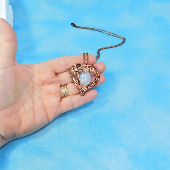 Artistic Copper Wire Wrapped Mother of Pearl Heart Necklace, Unique Artisan Crafted Pendant, Wearable Art Jewelry 7th Anniversary Gift